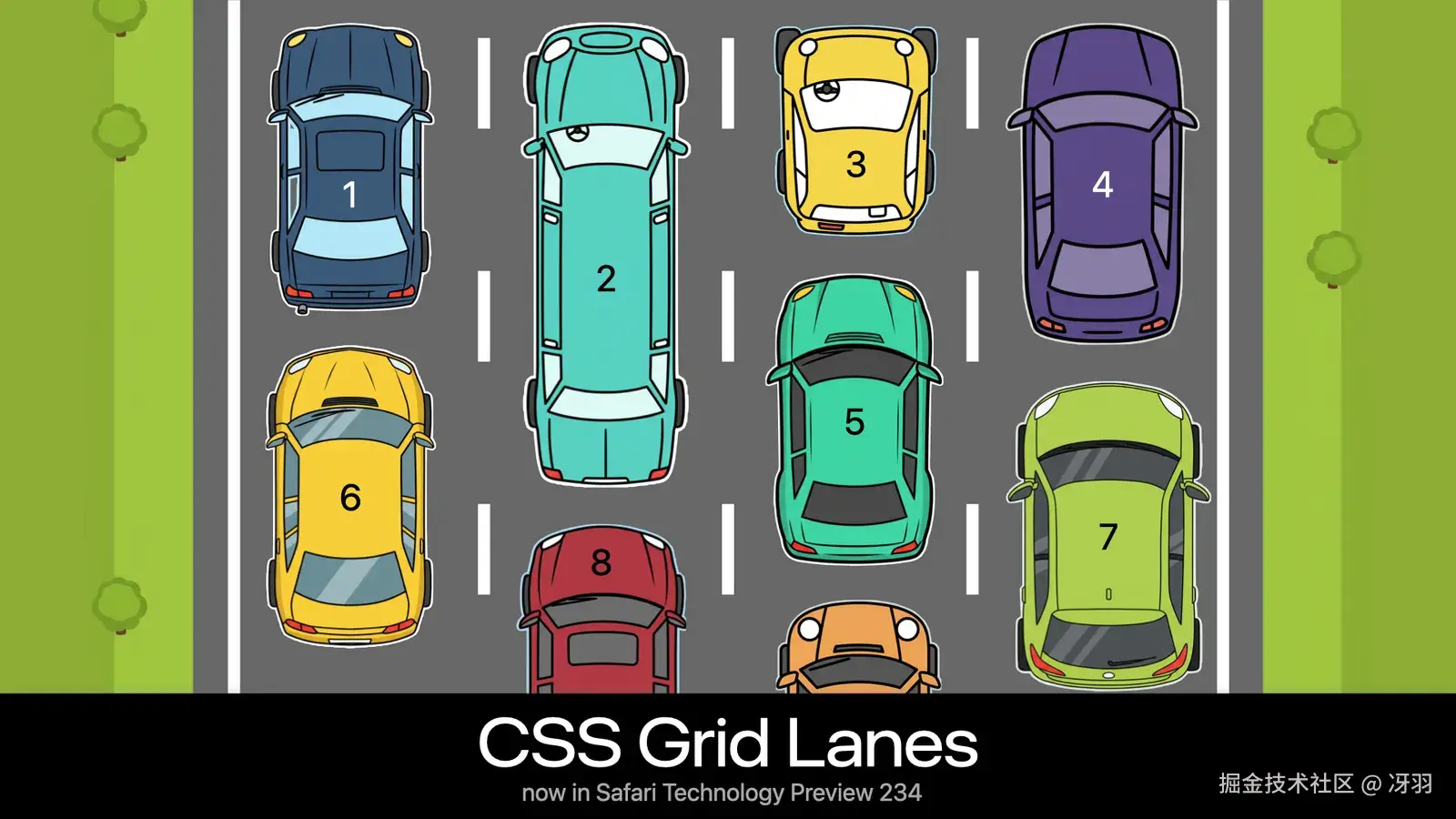 CSS Grid Lanes 就是这个原理------你先定义好有几条"车道"(列),网页内容会自动填充到最短的那一列,就像车辆自动选择最不拥堵的车道一样。
