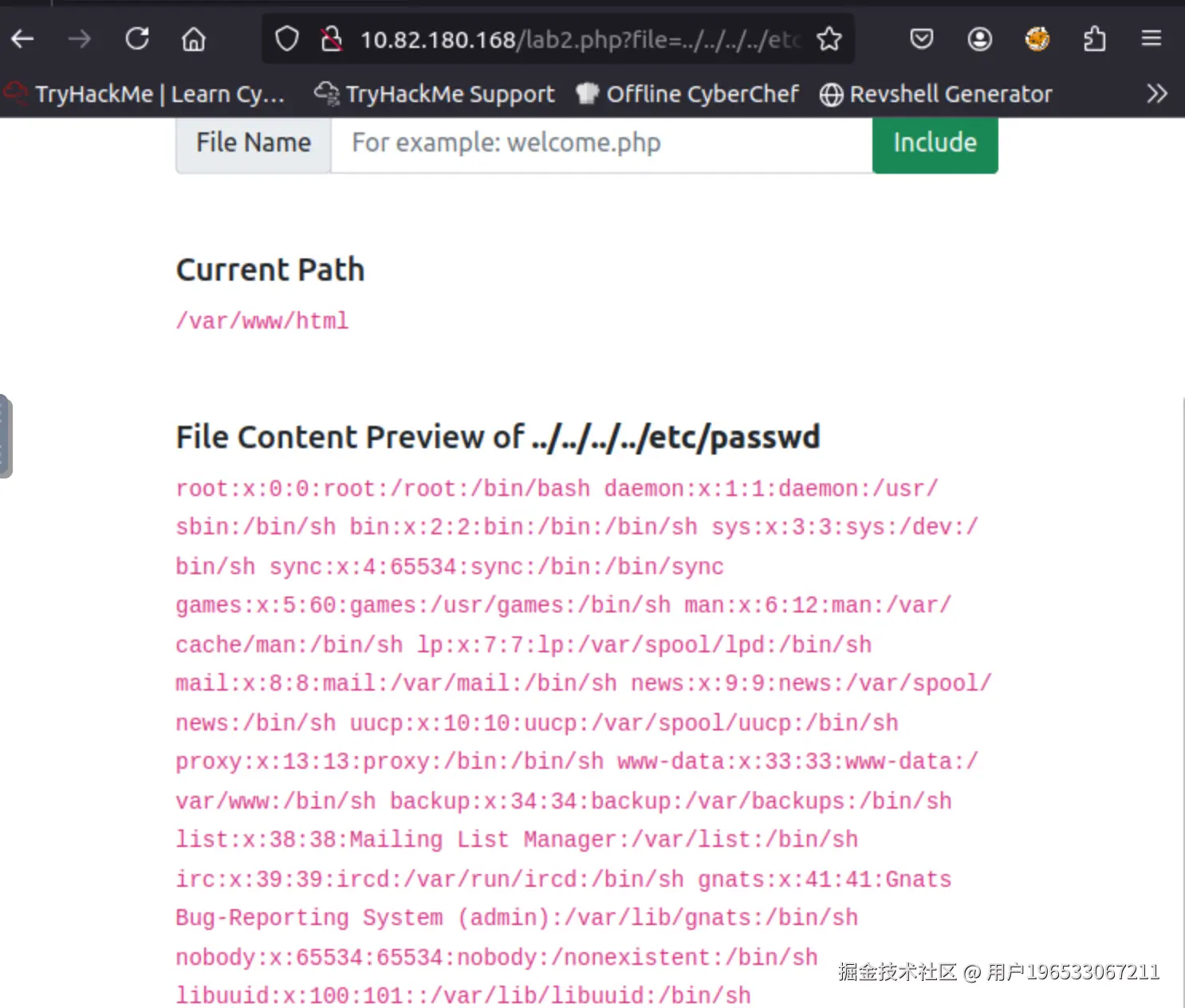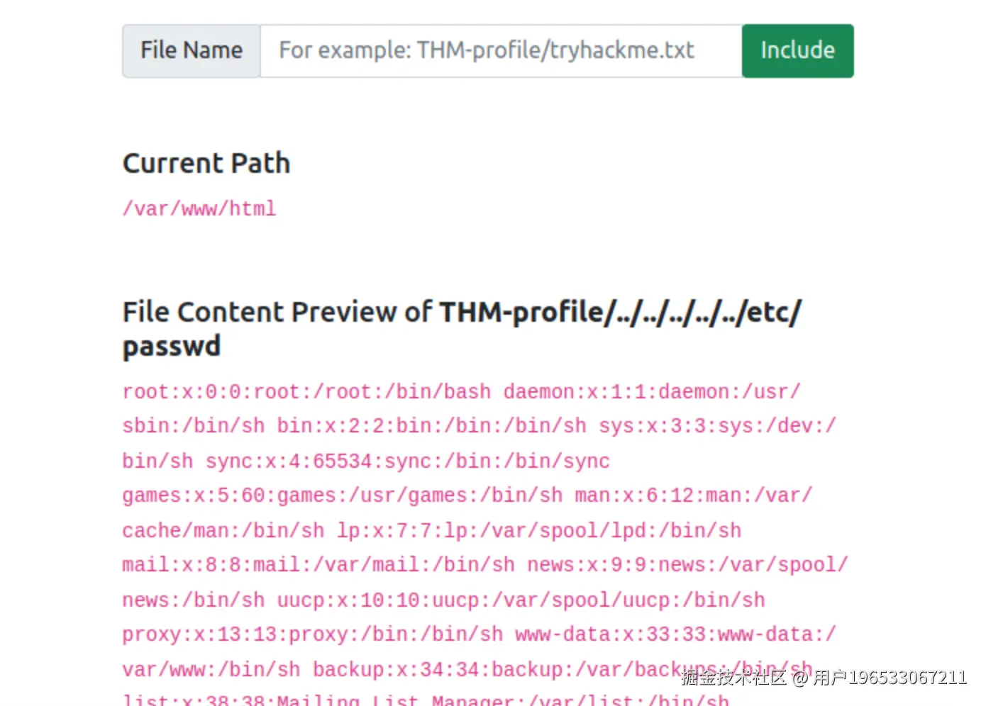 2、用THM-profile开头,通过目录穿透,来跳出,进而访问/etc/passwd