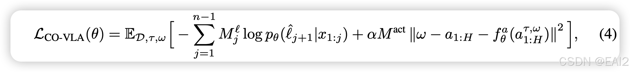 - 损失函数定义如 Eq (4),其中, Action Expert 的梯度不会传回 Backbone。