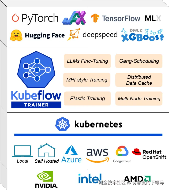 kubeflow是一个包含多个开源项目的AI生态组合, kubeflow以Kubernetes为底座,目标是成为部署、扩展和管理AI平台的系统。