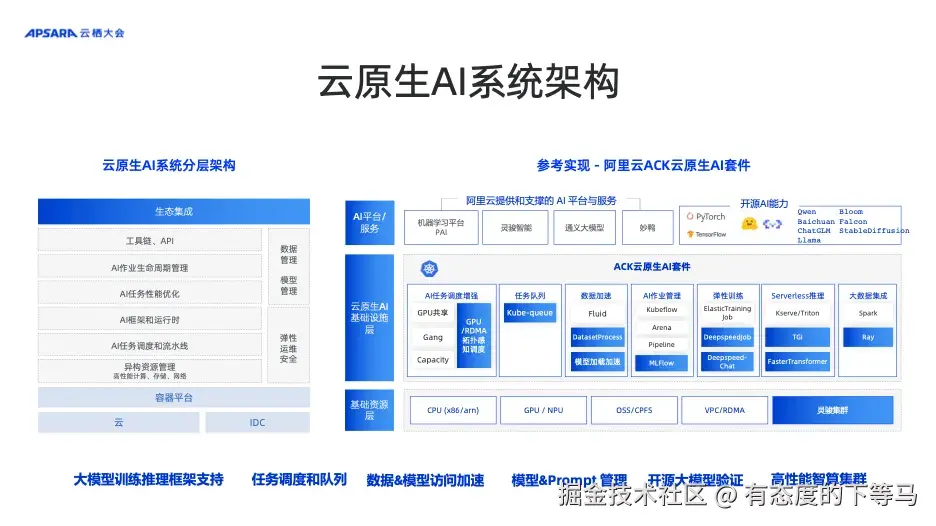 给近半年做的云原生AI算力平台做一个回顾, 思考和实践参考了云溪大会上的分享:为大模型工程提效,基于阿里云 ACK 的云原生 AI 工程化实践,全文很长,我这边做一个牵引和解读。