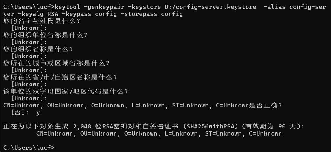 keytool -genkeypair -keystore D:/config-server.keystore -alias config-server