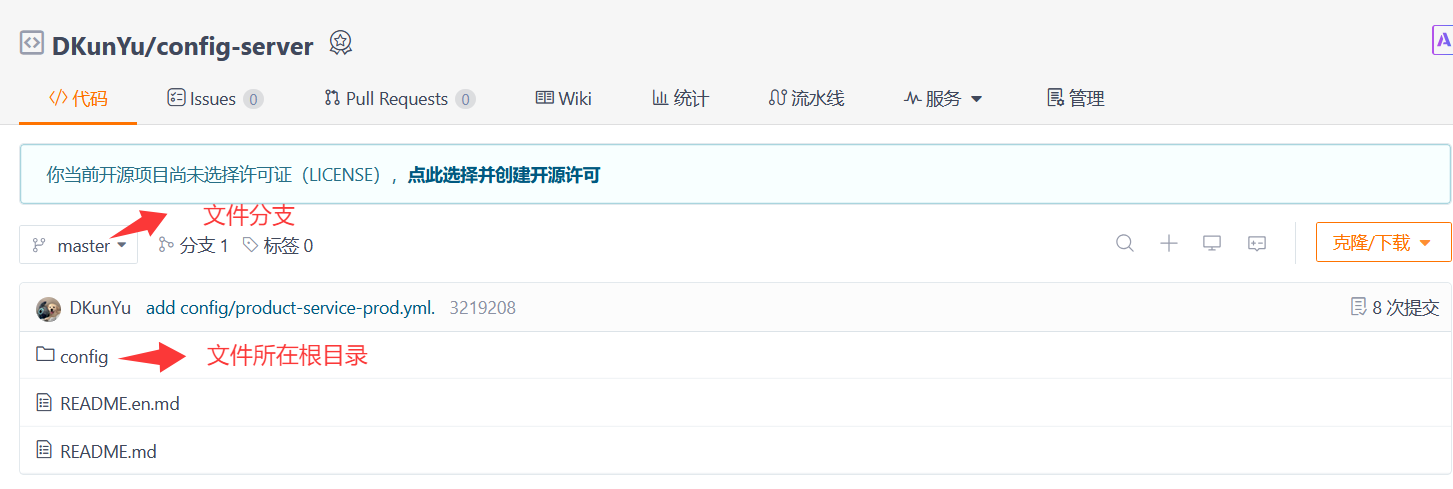 uri: https://gitee.com/dang-kunyu/config-server.git #配置⽂件Git 地址
