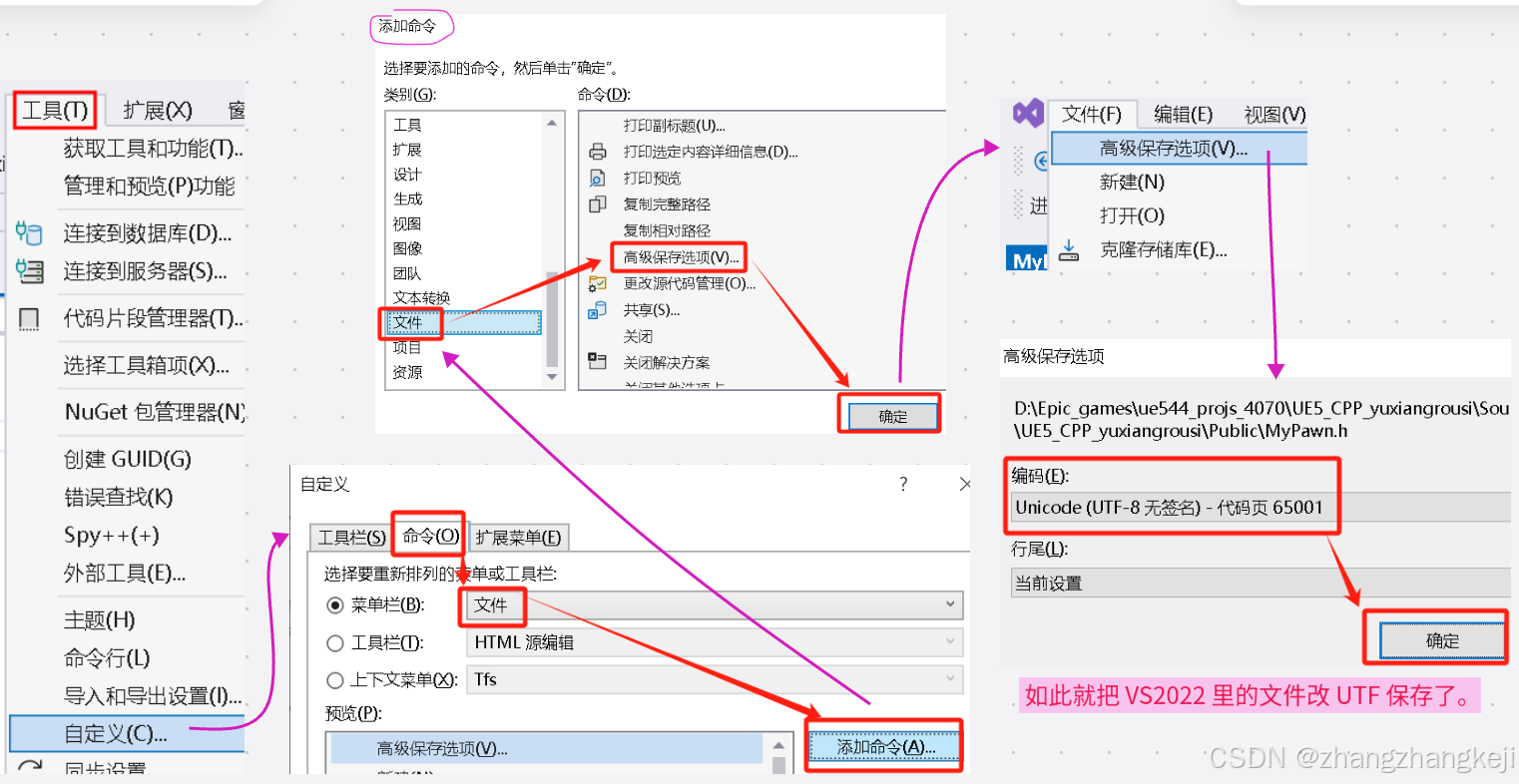 (8)这篇文章讲解了保存 vs2022 文本时采用 UTF 编码,以解决到 UE 里的乱码问题,高级保存选项