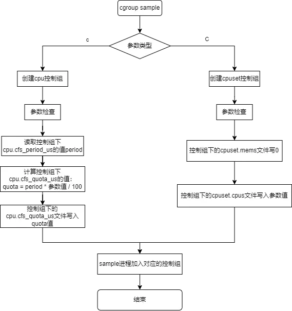 如果-c 和-C 都不选择,则不会限制 cgroup_sample 进程的 cpu 占用率和运行的 cpu 核。