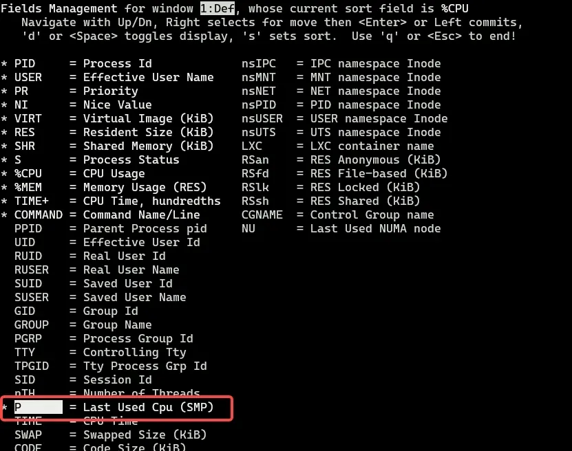 即可显示进程运行的 cpu 核。