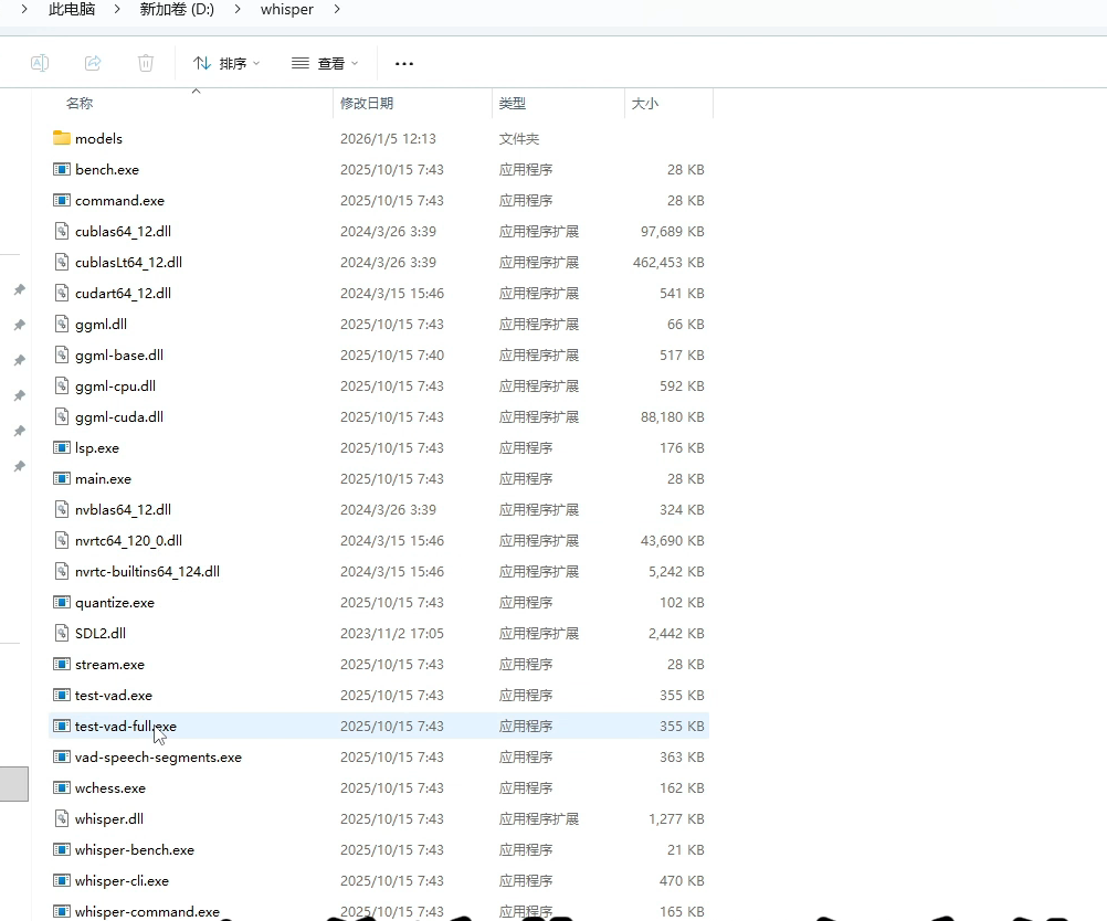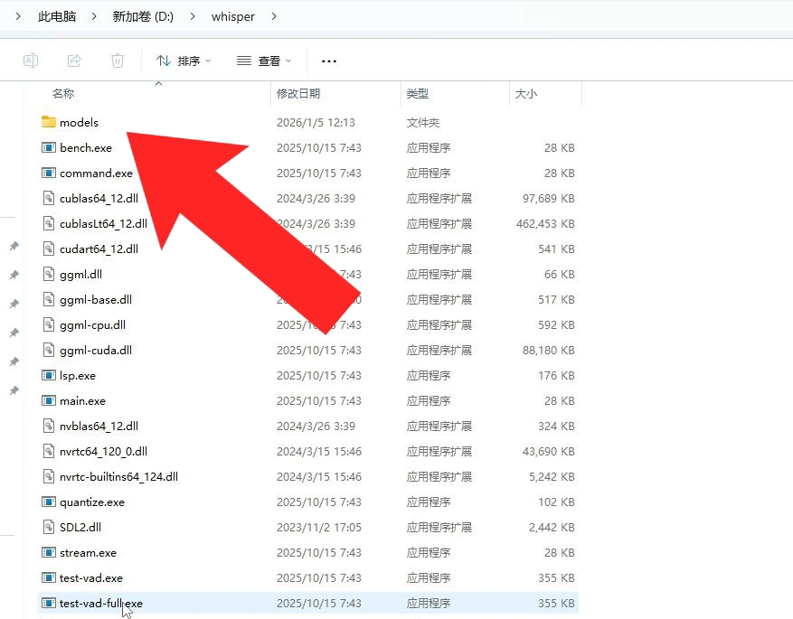 4、如果你需使用多个模型,只需将不同模型的bin文件下载并放入解压目录下的models文件夹中即可,软件会自动识别,软件对应的bin模型文件在models这个文件夹中,需求的可以同时下载多个模型,然后把不同模型中的models文件夹下面的bin文件复制到同一个模型目录中就可以了。