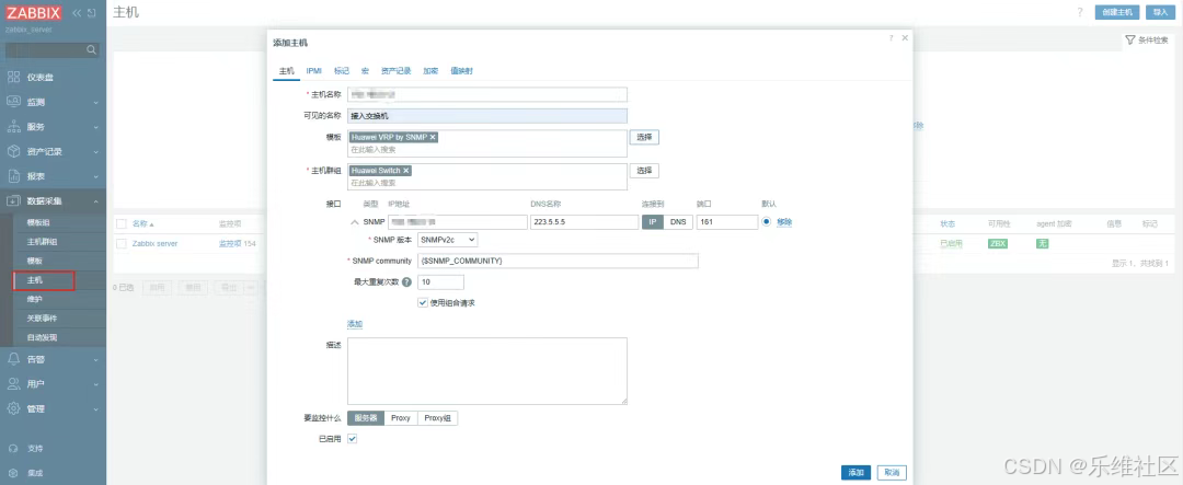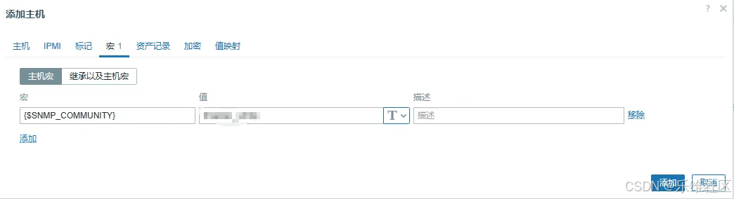 目标主机ip写Zabbix的ip,用户名称是团体名