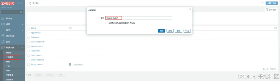 主机群组写上面定义的那个Huawei Switch
