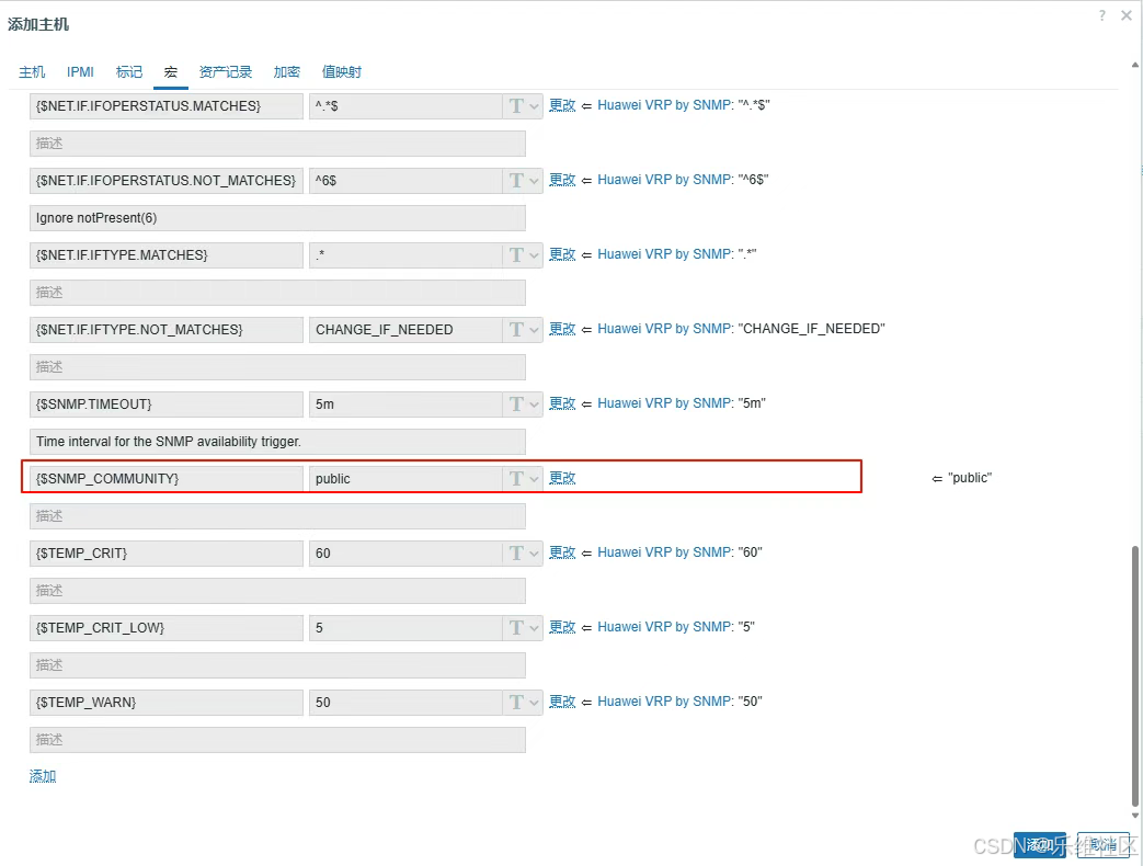 选择宏,值写交换机SNMP的团体名