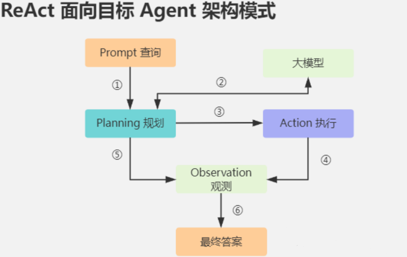 - Act(行动):根据推理结果,调用工具执行操作(如 API、计算器、搜索)。