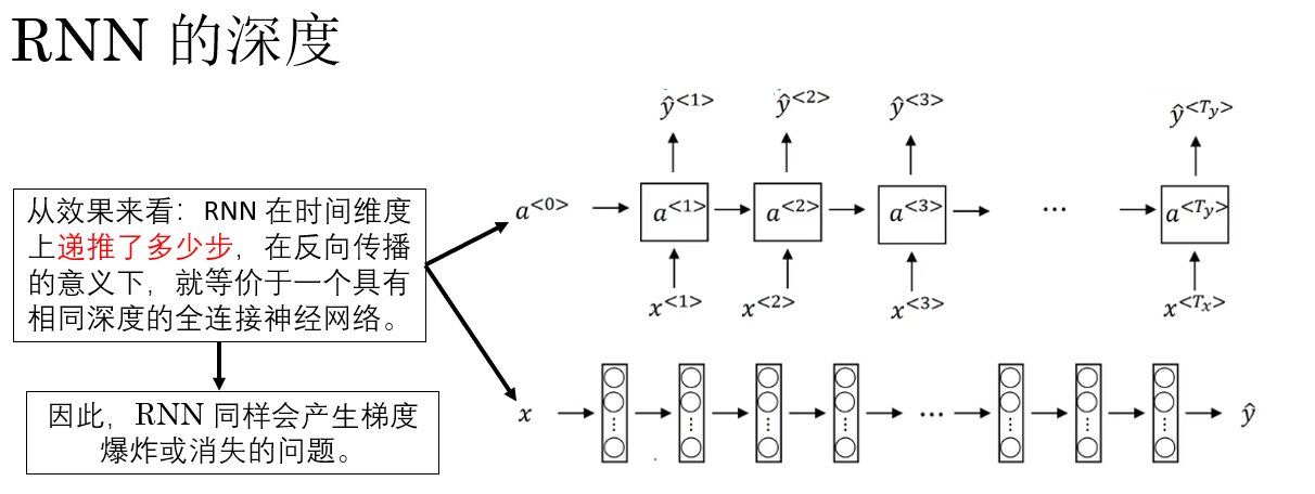 | RNN 的"深度" | RNN 在时间维度上展开为共享参数的深层网络,梯度需要沿时间轴反向传播,连续乘以权重矩阵 \(T\) 次 | 好比一个接力赛,每一棒都必须传递能量,接力棒越多,总能量损耗越大 |
