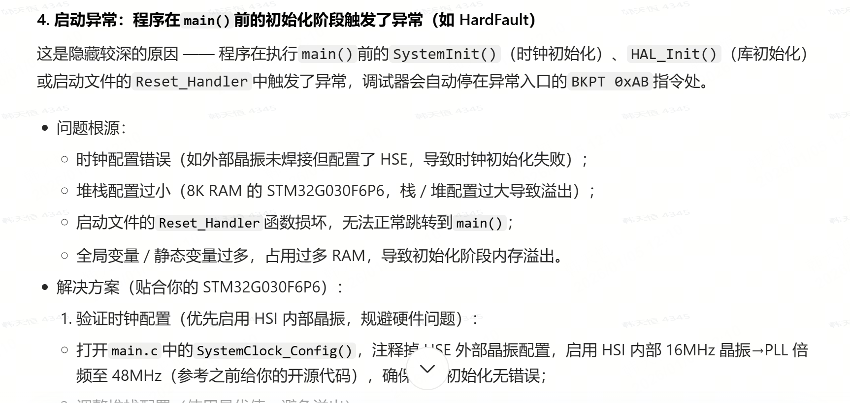 - [5. 发现单步调试时,按下了RUN之后经常停留在 BKPT(断点)处](#5. 发现单步调试时,按下了RUN之后经常停留在 BKPT(断点)处)