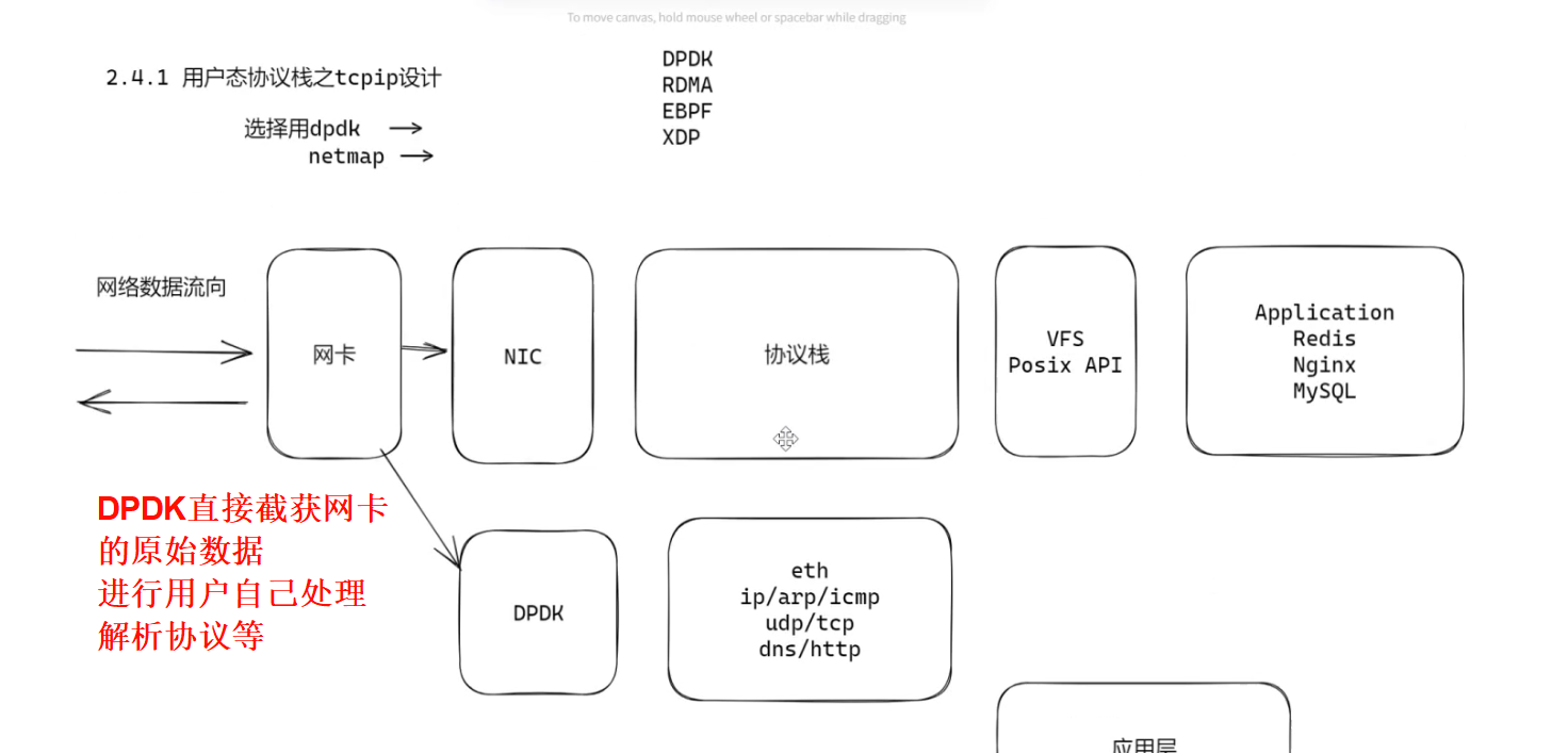 Dpdk绕过了Linux内核态协议栈,以提升报文处理效率。直接截获网卡的原始数据,让用户自行处理,解析协议等等。