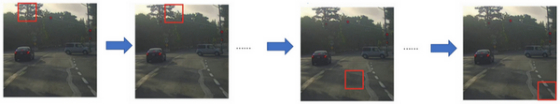 上图是一张测试图片,操作步骤如下:选定一个特定大小的窗口,将这个红色小方块的图像输入卷积神经网络,卷积网络开始进行预测,即判断红色方框内有没有汽车。然后窗口滑动到第二个红色方块内的图像,并输入给卷积网络,再次运行卷积网络。然后依次重复操作,直到这个窗口滑过图像的每一个角落。