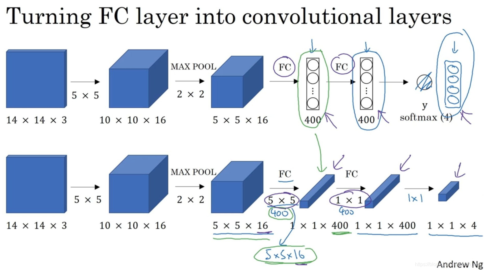 - 滑动窗口的卷积实现,要把卷积神经网络的全连接层转化成卷积层