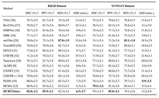 (4)在多个大规模乳腺DCE-MRI数据集(包括私有与公开数据集)上对所提出的方法进行了系统评估。实验结果表明,HCRT在分割精度与稳定性方面均显著优于现有主流SOTA方法,验证了其有效性与实际应用潜力。
