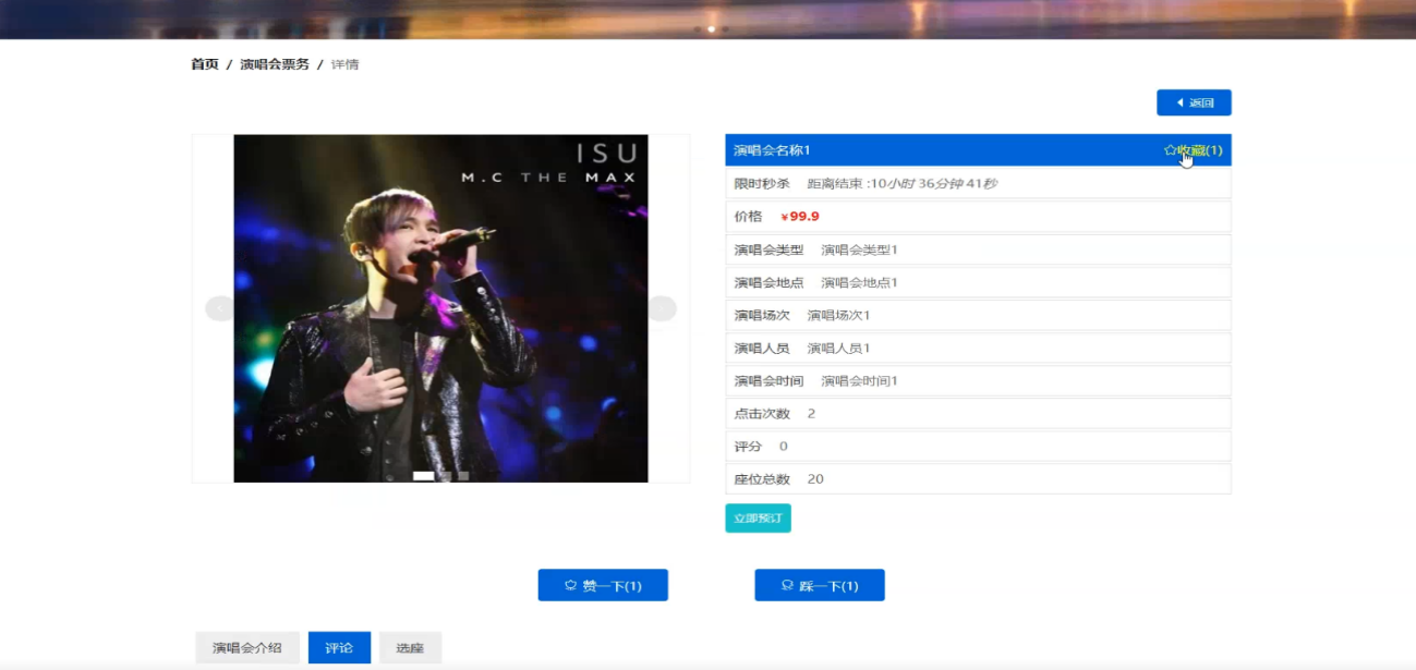 - 辅助功能:可收藏感兴趣的演唱会、对演唱会发表评论,查看个人订单记录。