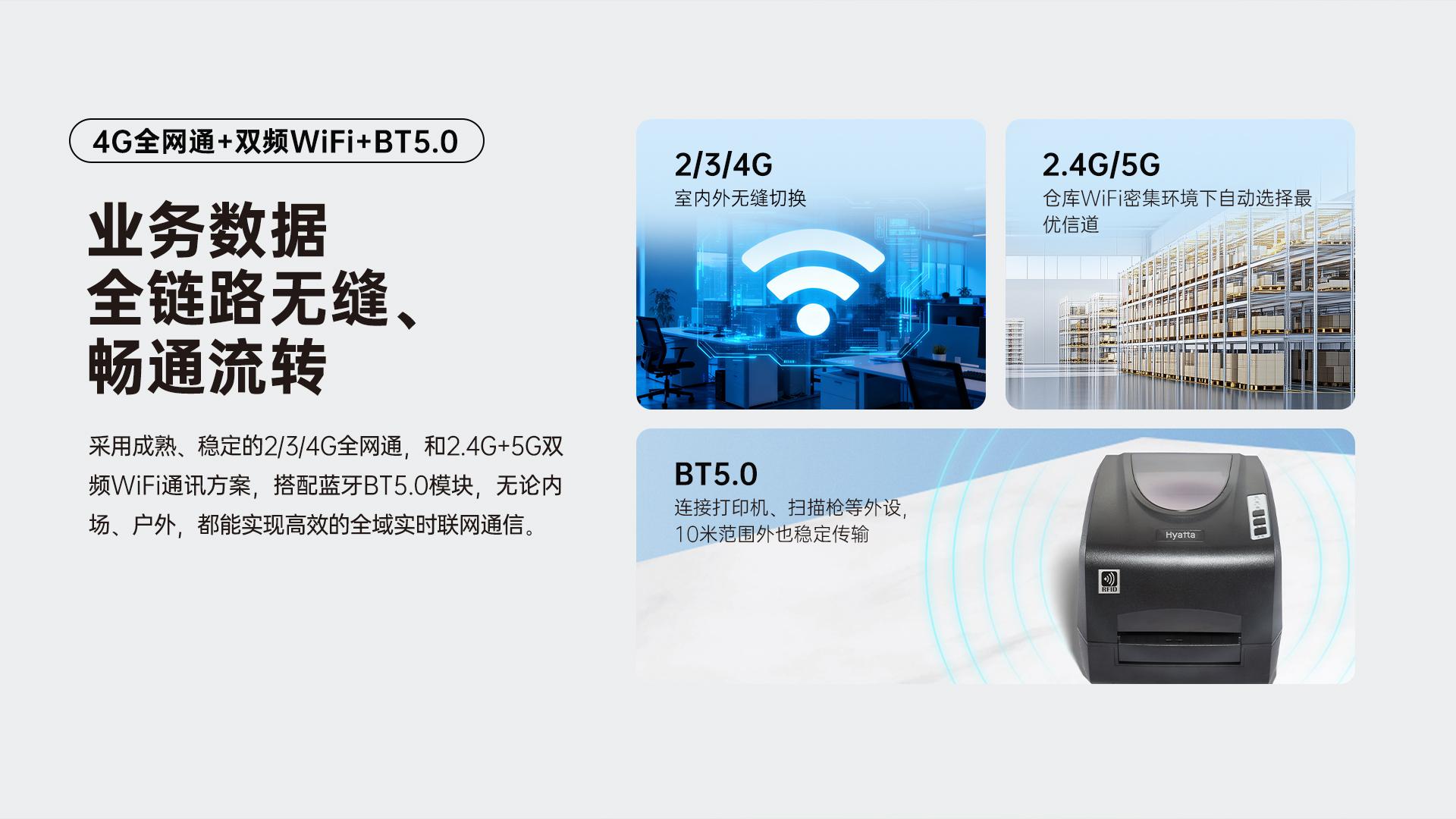 - 通信能力 :支持4G全网通,双频WiFi(2.4G+5G),蓝牙5.0,实现业务数据全链路无缝流转。