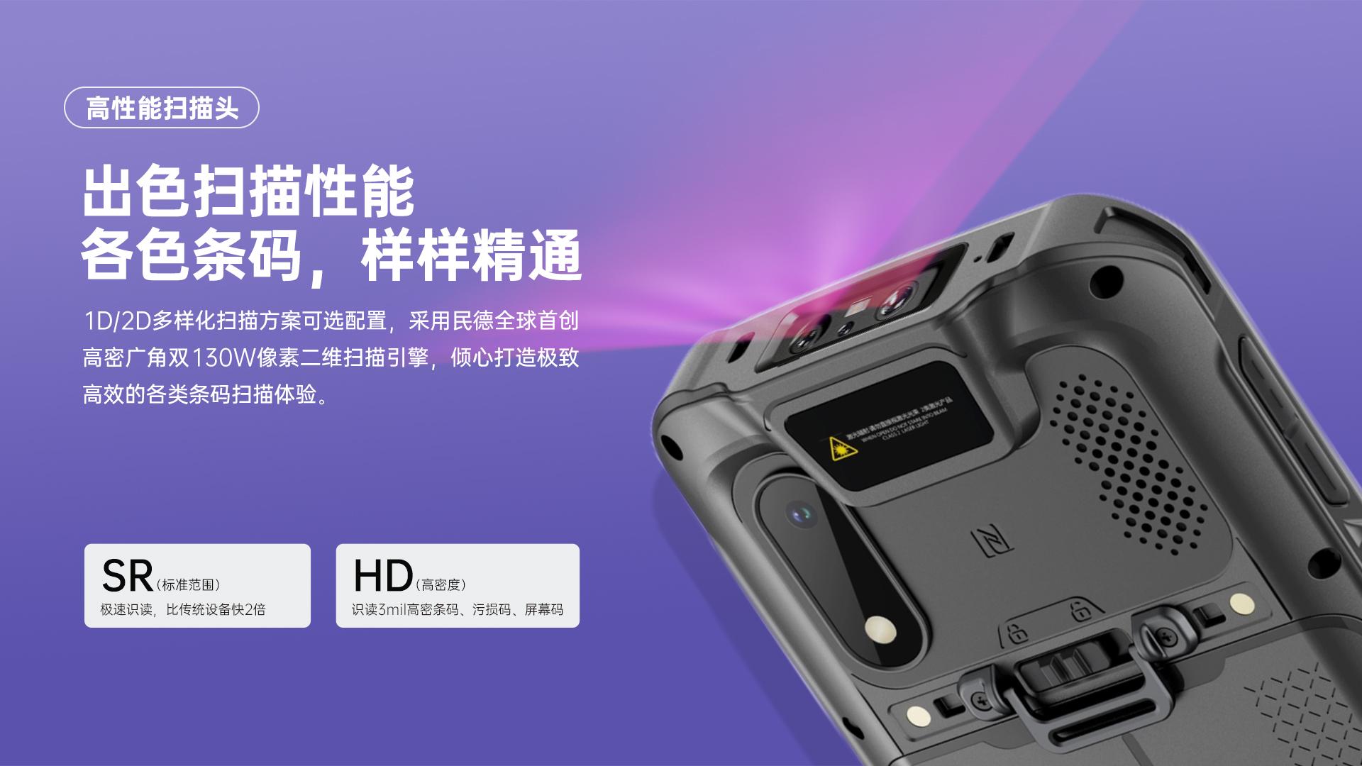 - 大电池容量 :5000mAh,支持12小时连续作业,满足早晚两班的移动业务需求。