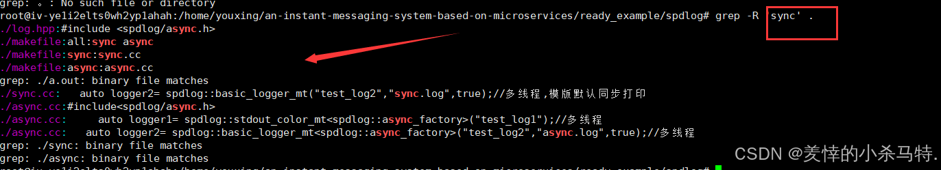 当前目录的文件指定包含'sync'这个文本的行打印出来(包括文件名+对应行,然后把对应文本标记出来)。
