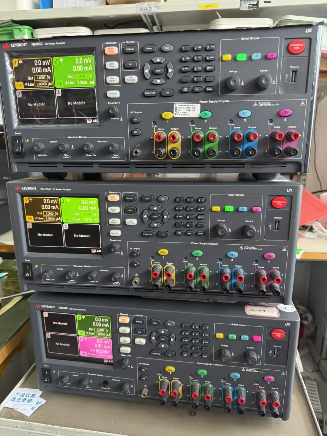 核心功能与规格 N6705C 采用模块化设计,主要特性包括: 多通道集成:支持最多 4 个独立输出通道,总功率达 600W,可同时为多个被测设备(DUT)供电并监测。 3 4 高精度测量: 电压表精度:0.025% + 50µV(分辨率 18 位)。 电流表精度:0.025% + 8nA(分辨率 18 位)。 3 5 多功能集成: 示波器:支持电压/电流数字化,采样率 200kHz,存储深度 512kpts。 任意波形发生器:带宽 100kHz,输出功率 500W。 数据记录仪:测量间隔 20µs--60s,单次存储 5 亿个读数。 4 6 低噪声设计:纹波和噪声低于 350µVrms,确保测试稳定性