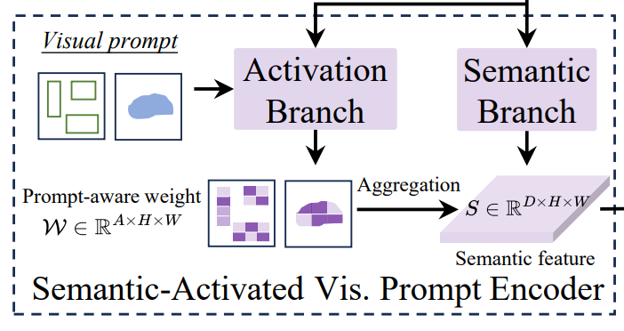 语义视觉提示编码器(SAVPE),具有两个解耦的轻量级分支,(1)语义分支,(2)激活分支。