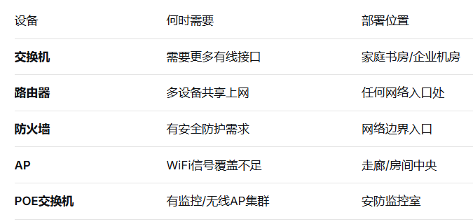 路由器管"内外联通",交换机管"内部互通",防火墙管"安全守卫",AP管"无线覆盖"