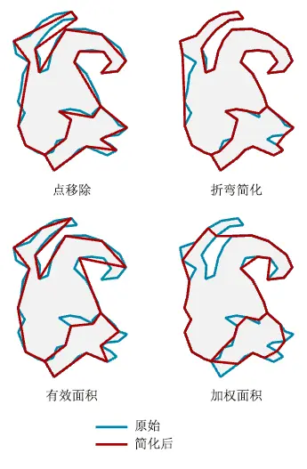 多边形简化的本质是在减少折点数量的同时,尽可能保留原始几何的形态特征。目前业界主流的四种方案如下: