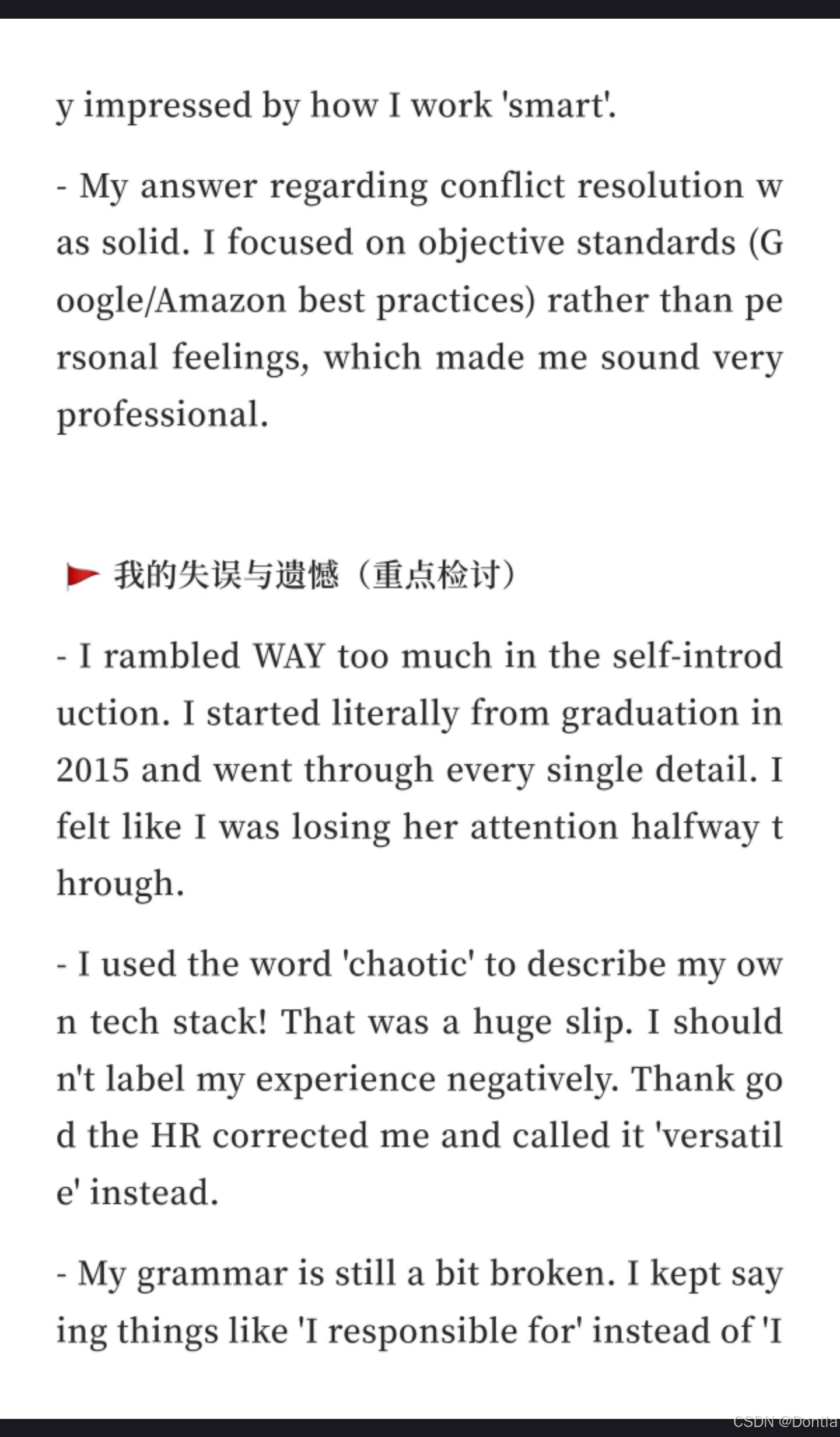 Overall, I think I passed because my technical examples were strong and my attitude was good. However, for the next round (Technical Interview), I MUST concise my introduction---nobody wants to hear a 5-minute biography. Also, I need to stop apologizing for my background; 'Hybrid' experience is a strength, not a mess! And finally, review the 'Be + Adjective/Noun' grammar structure.