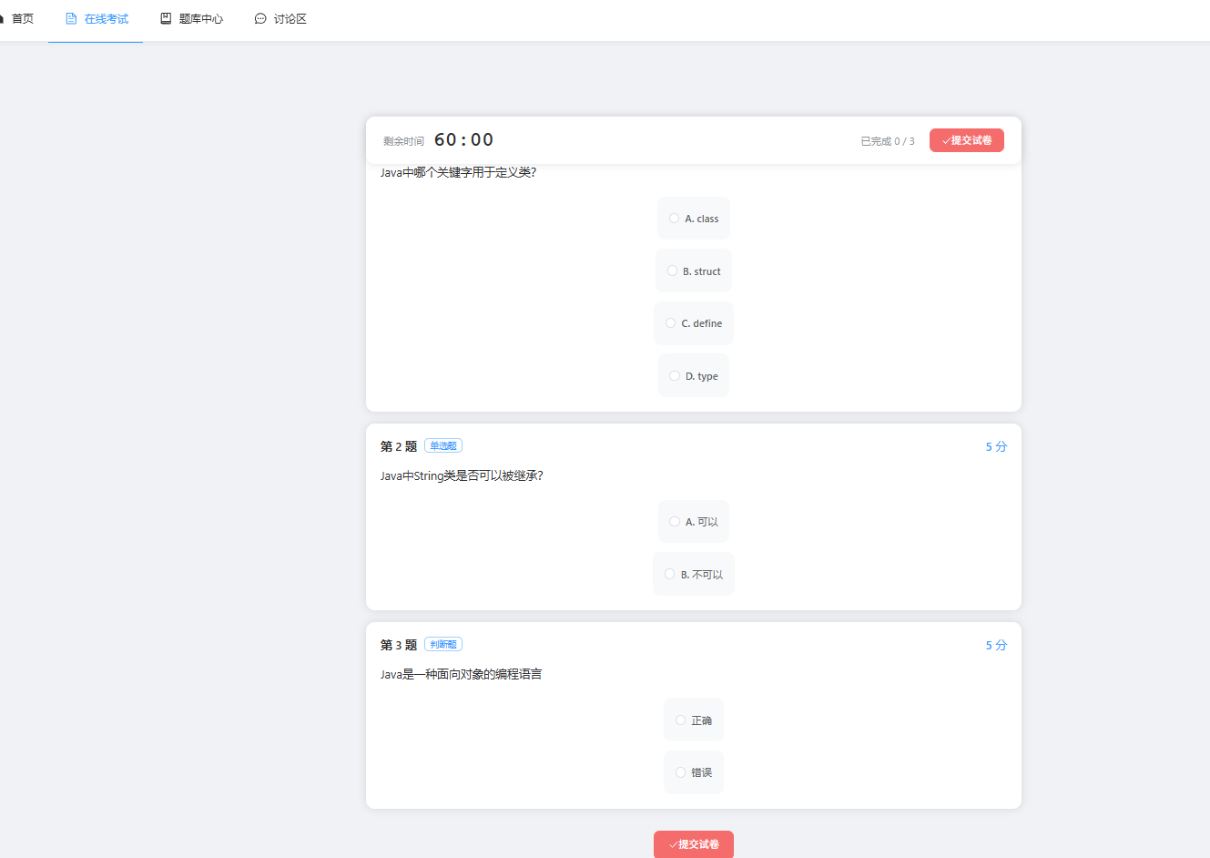 - [5.3.3 在线考试](#5.3.3 在线考试)