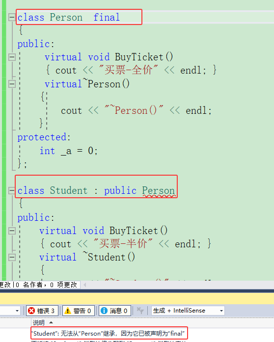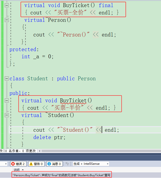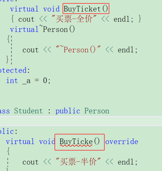 将BuyTicket(),删除末尾的 t ,然后就不是函数重新,override检测还是是否符合三同。