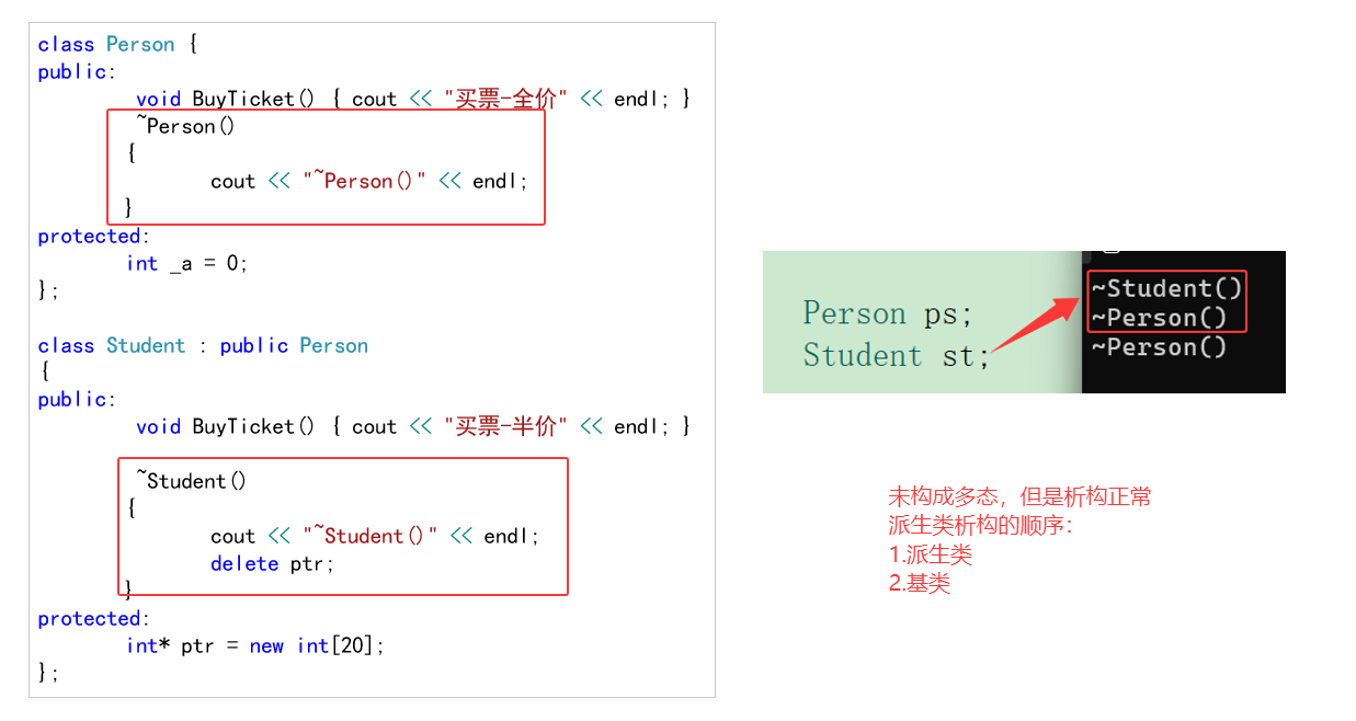 C++的类中将析构函数的函数名 统一处理 为 destructor,为了是让析构函数也构成多态。