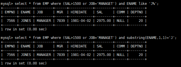 查询工资高于500或岗位为MANAGER的雇员,同时还要满足他们的姓名首字母为大写