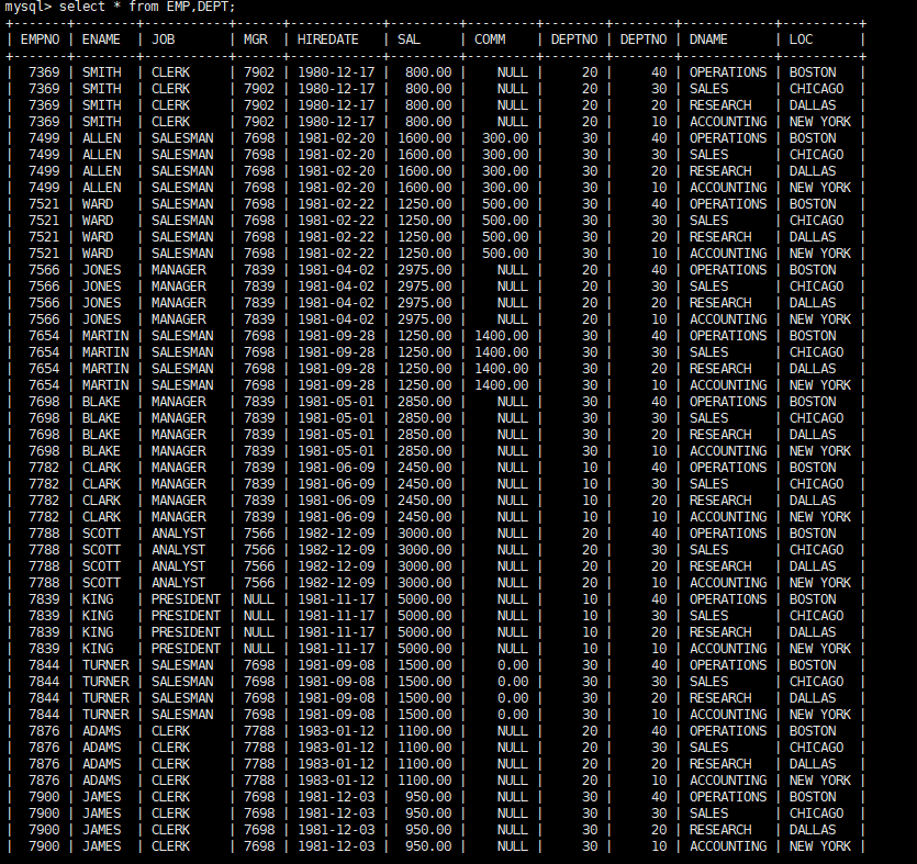 上面员工名字、工资来自于EMP表,所在部门名称在DEPT表里拿