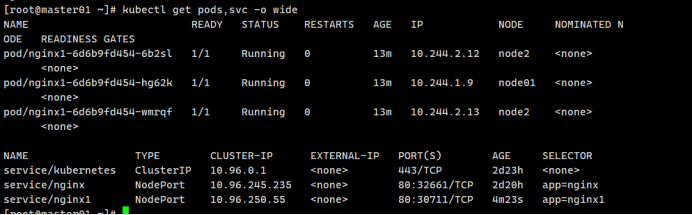 - 查看网络状态信息,节点分布和内部暴露的端口,如果是像删除deployment管理下的pod,先删除deployment资源管理器,他所管理的pods就会自动删除。