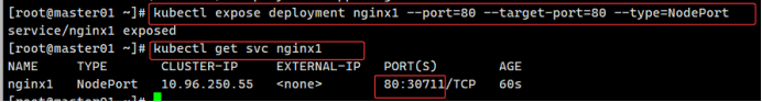 2、创建并查看Service详情,找到NodePort端口,--target-port必须写容器端口。--port可以写其他端口。