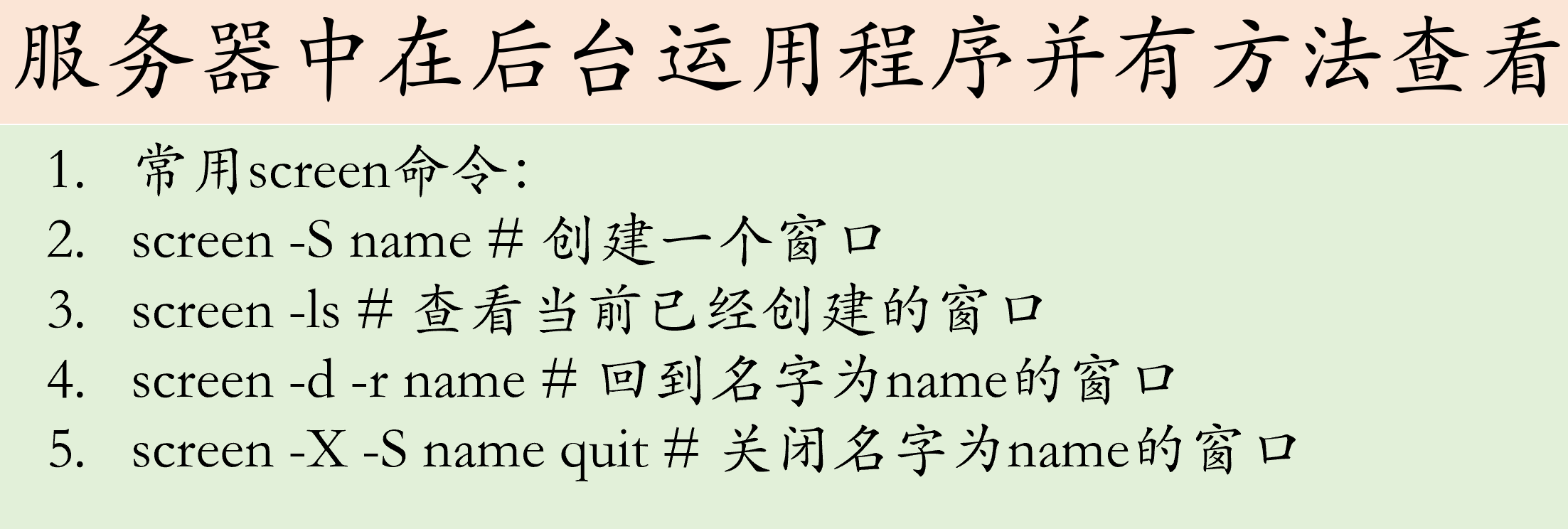| 老系统无 tmux | screen -S foo |