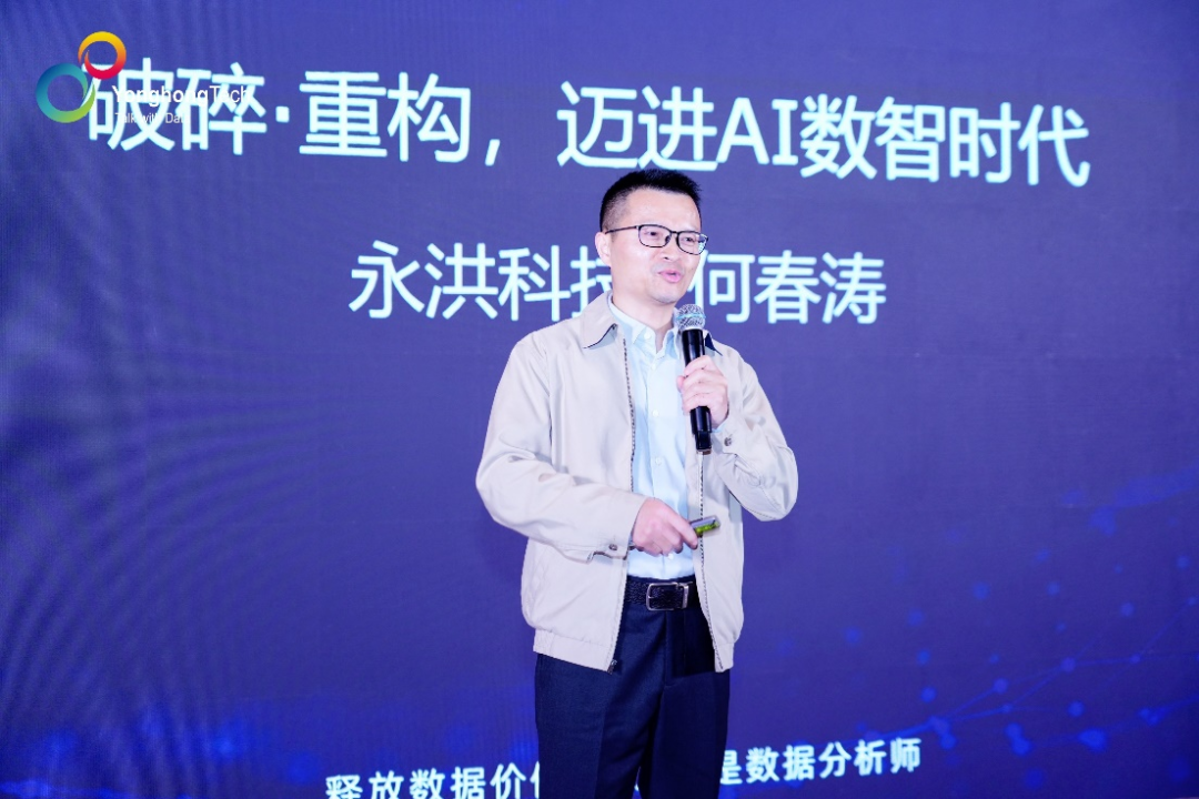 大会伊始,永洪科技创始人兼 CEO 何春涛在大会开场直指行业痛点:数据孤岛造成的视野盲区、复杂技术门槛导致的数据垄断、依赖个人经验的滞后决策、传统 BI 工具与业务行动间的漫长断点,这些旧有模式的 "瓶颈" 已成为企业发展的枷锁。而重构的方向,是构建一个由数据平权、洞察平权、决策平权构成的 "三重平权" 新世界 ------ 让数据可及、可信、可用,让业务人员能自主获取洞察,让决策从 "集中式""经验驱动" 转向 "分布式""数据驱动"。