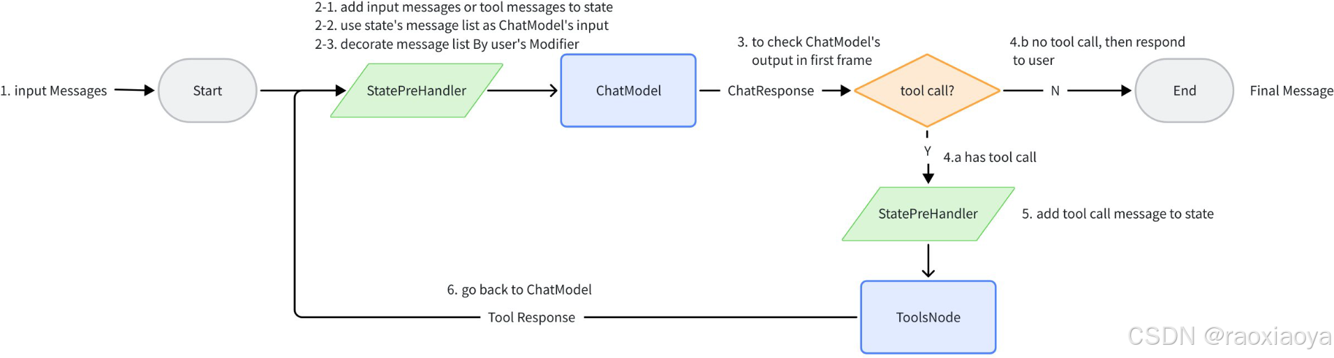 tools 是由chatModel调用的,因此需要将 tools 节点放在 chatModel 的下面,并且将 tools info 注入到 chatModel