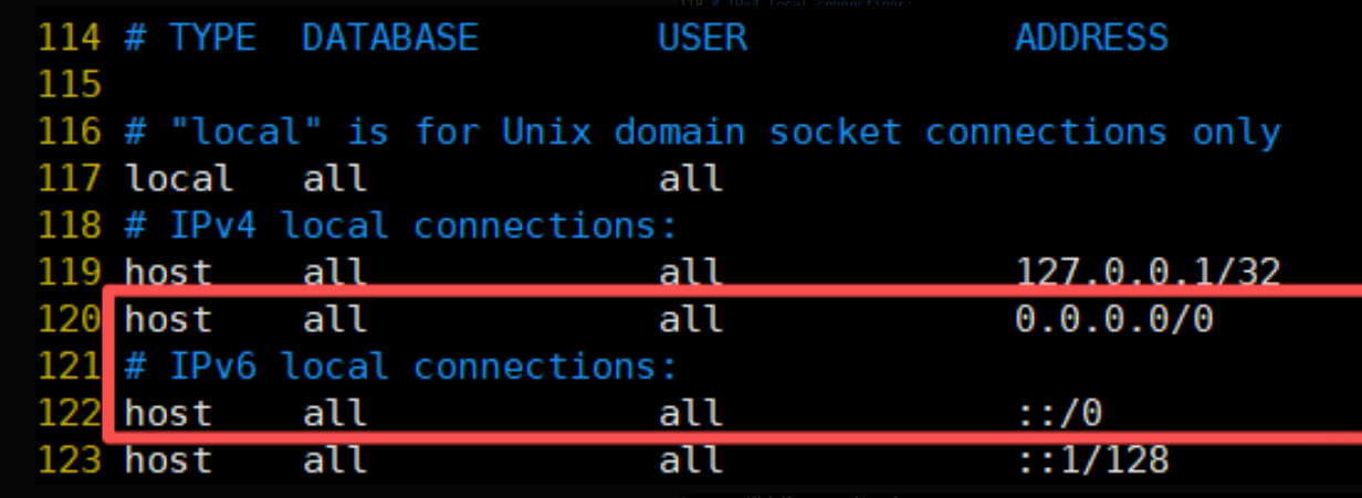 vi /app/postgres/pgsql/data/pg_hba.conf