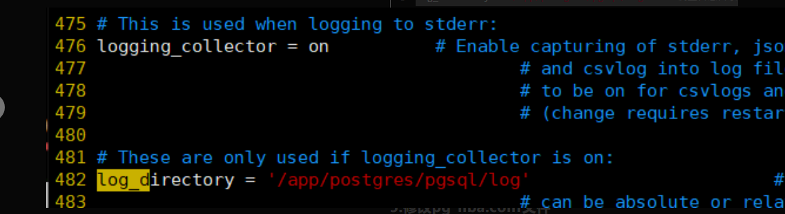 log_directory = '/app/postgres/pgsql/log' #调整日志目录