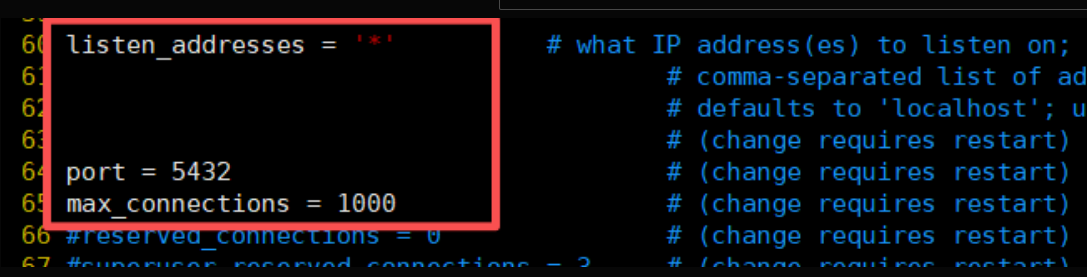 listen_addresses = '*' #允许远程连接
