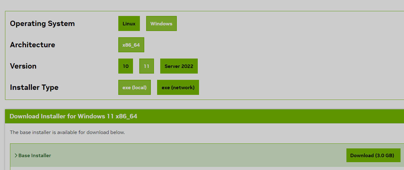 4最后然后下载合适的 cuda:https://developer.nvidia.com/cuda-toolkit-archive