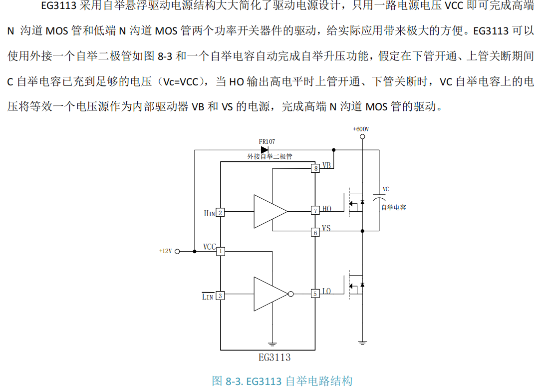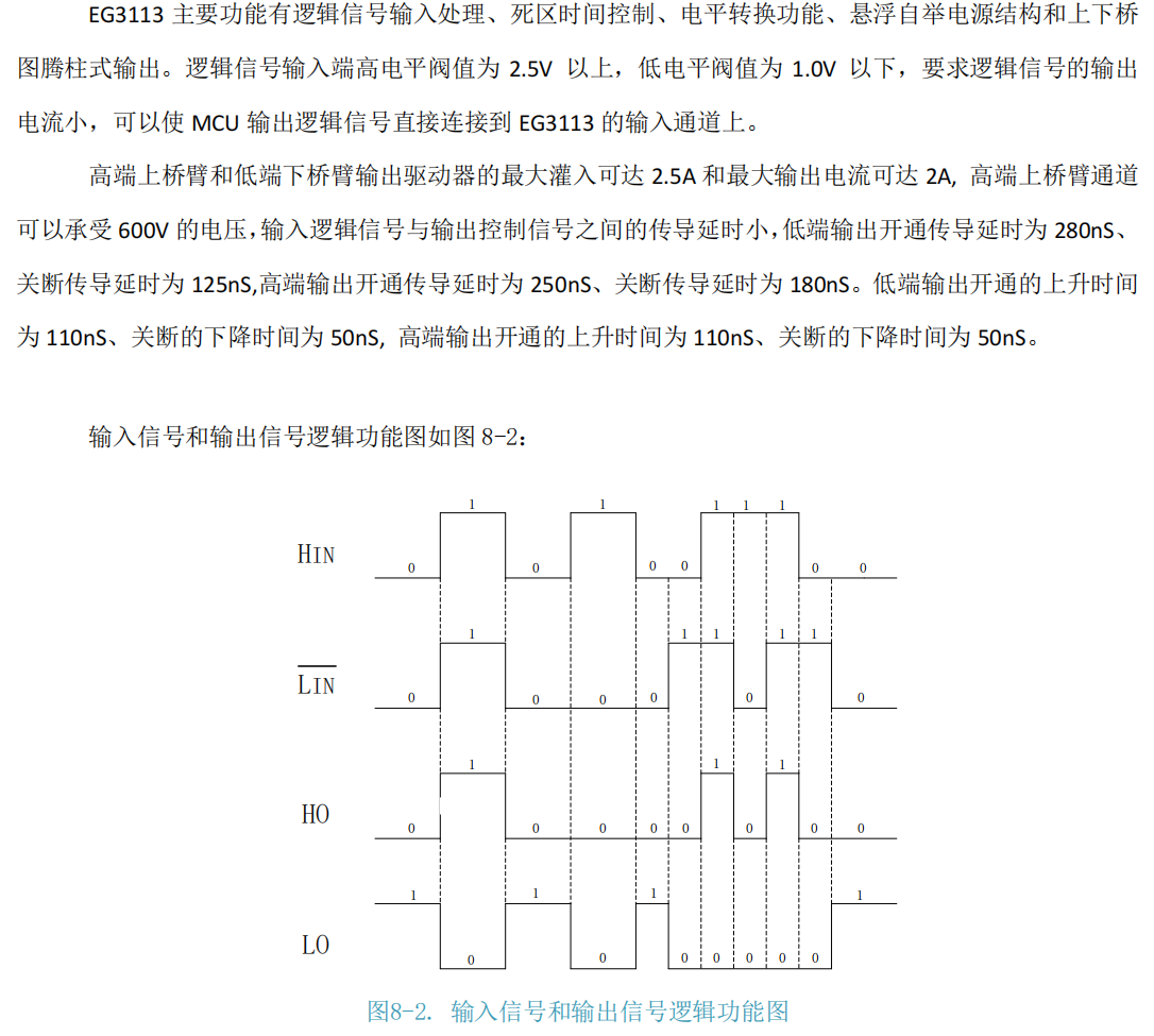 EG3113 是一款专为大功率MOSFET和IGBT设计的 高压半桥栅极驱动芯片