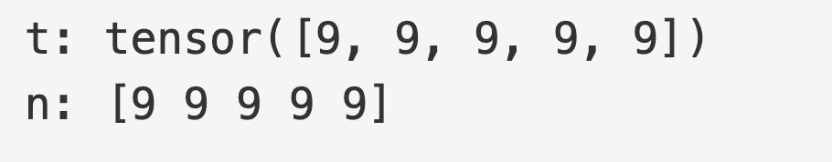 张量的变化会反映在 NumPy 数组中。