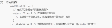 - 可以让你在函数组件中用于模拟类组件的生命周期钩子