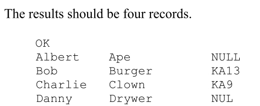 现在,如果我们尝试将此文件加载到具有3列的hive表中,hive显然会成功加载此文件,但如果我们尝试从具有第二列值为NULL的表中捕获数据,则会返回零行 。 因为默认情况下,分隔符之间没有空。 分隔符之间的所有内容都是Hive的数据。 Hive不会将缺失的值视为NULL值。 它将是Hive的正常值,即使它是空的。