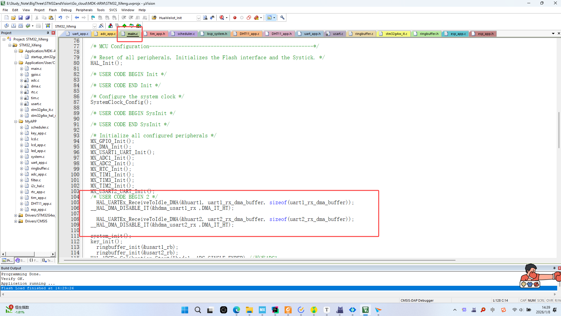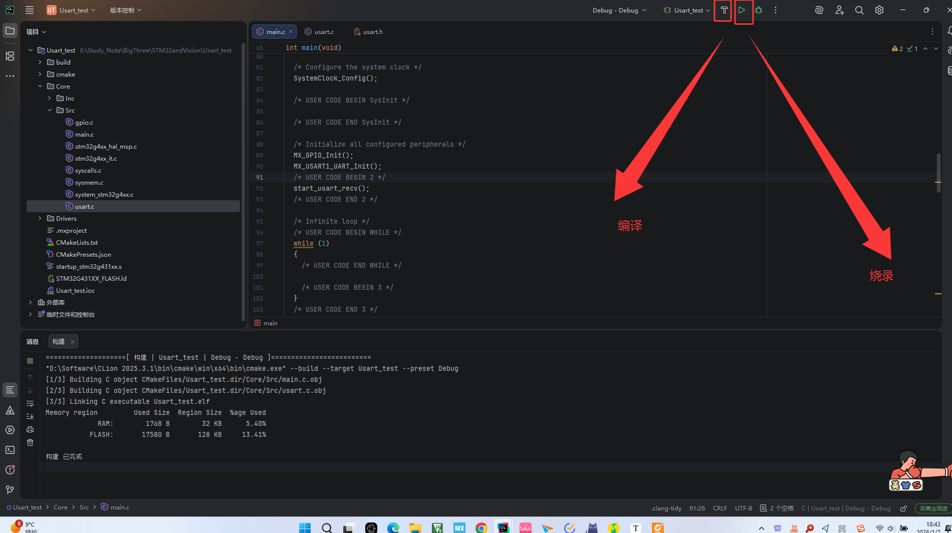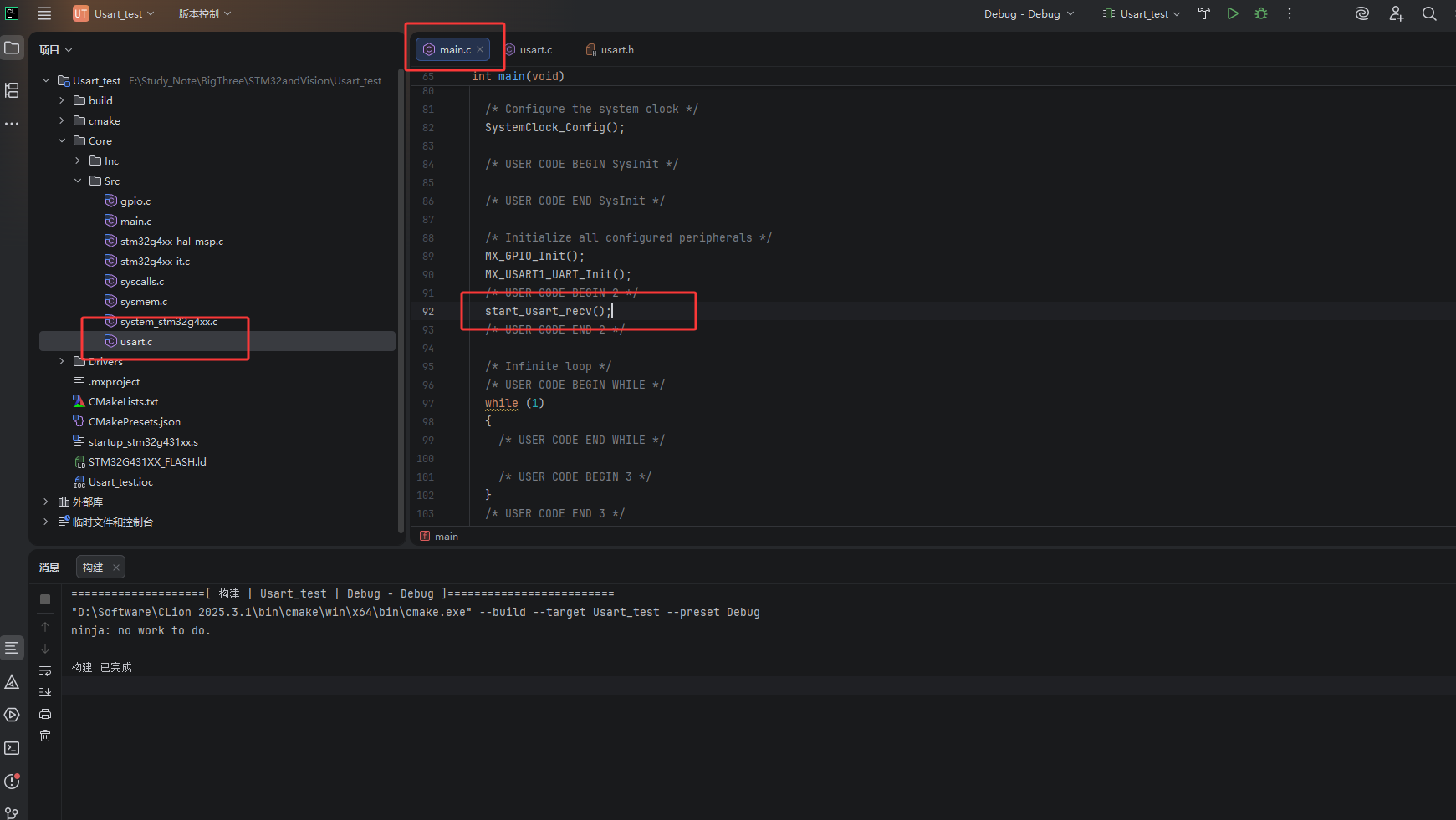 在main.c中,一开始要调用一下**start_usart_recv()** 这个函数,本质是调用**HAL_UART_Receive_IT()**(为什么一开始要调用呢,因为你要告诉他接收到数据了后数据应该往哪里存)