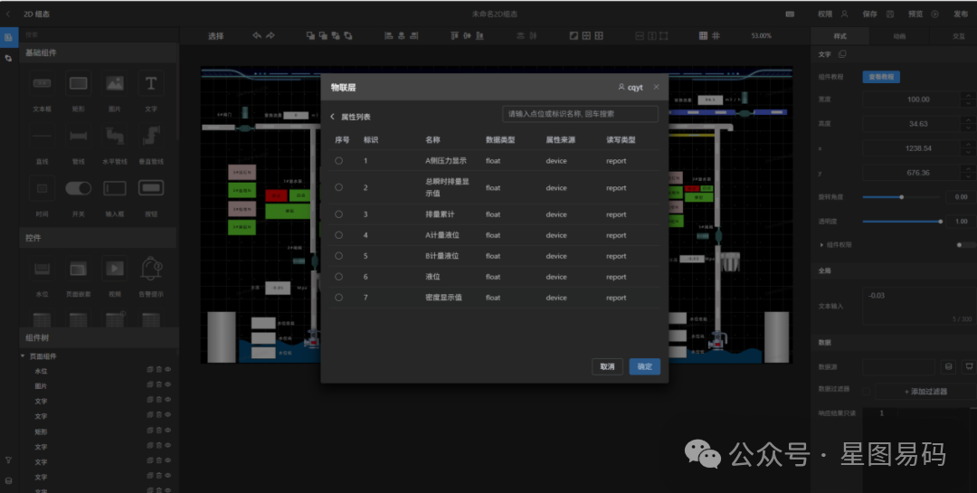 作为星图云开发者平台的原生组件,IoT物联网平台与Web页面编辑器、2D/3D组态编辑器等模块深度协同,将数据无缝融入开发生态。